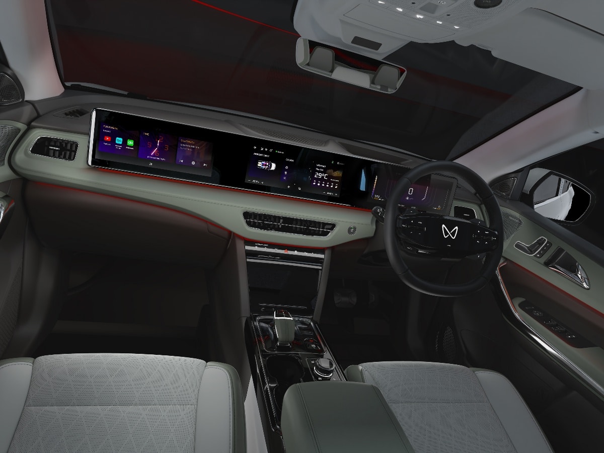 உள்ளே, ஏழு இருக்கைகள் கொண்ட மஹிந்திரா எலக்ட்ரிக் எஸ்யூவியில் பனோரமிக் சன்ரூஃப், டேஷ்போர்டில் மூன்று டிஸ்பிளே அமைப்பு, இரண்டாவது வரிசை பயணிகளுக்கான திரைகள், ஹர்மன் கார்டன் மியூசிக் சிஸ்டம், பவர்டு பாஸ் மோட், டூ-ஸ்போக் மல்டிஃபங்க்ஷன் பிளாட்-பாட்டம் ஸ்டீயரிங் வீல் கொண்டுள்ளது.