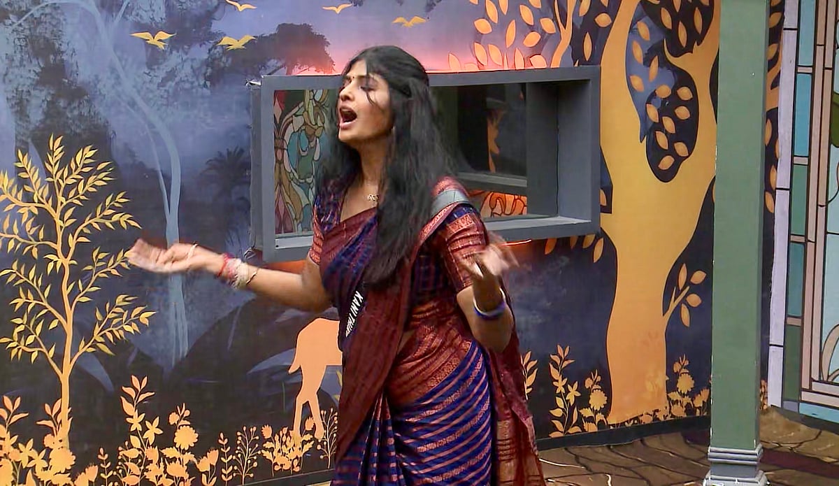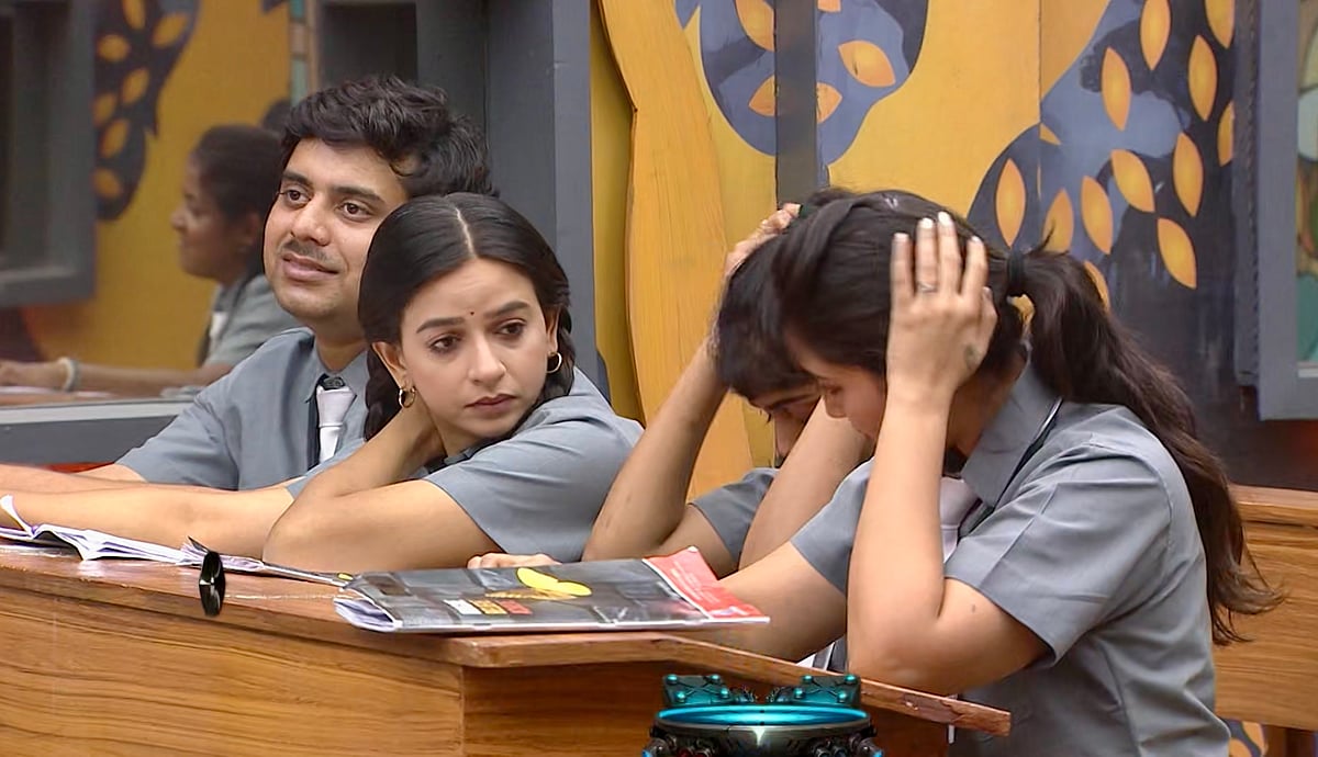 ஸ்கூல் டாஸ்க்கில், பொருட்களை ஒளித்து வைப்பதுதான் சுவாரசியம் என்று நினைத்து விட்டார்கள் போல. சபரியும் விக்ரமும் சேர்ந்து பாருவின் சேலையை ஒளித்து வைத்து பிராங்க் செய்ய முடிவு செய்தார்கள். இது ஒரு விளையாட்டுதான். பாரு இதை விளையாட்டாக எடுத்துக் கொண்டிருக்கலாம். அல்லது அவரே சொன்னது போல் ஏதாவது மாடர்ன் டிரஸ்ஸை போட்டுக் கொண்டிருக்கலாம்.