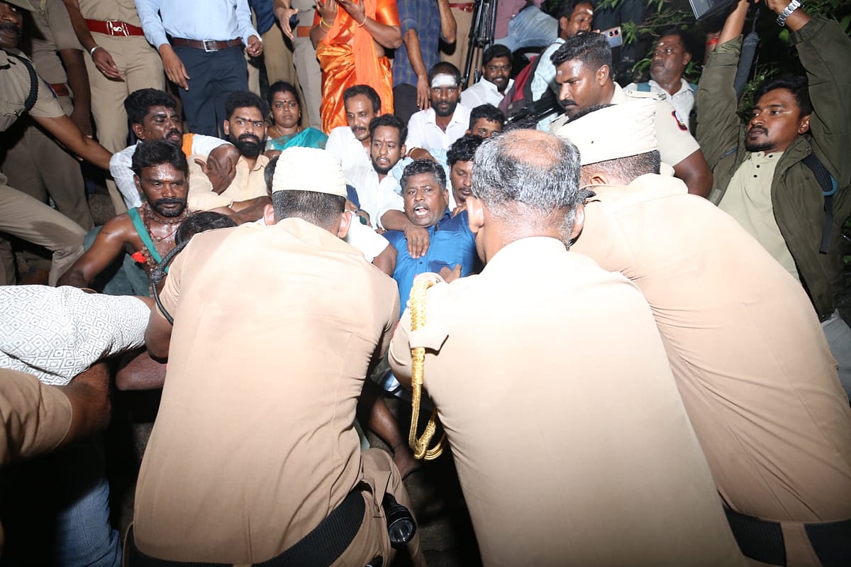 இதை மீறி மலை உச்சிக்குச் செல்ல முயற்சி செய்த இந்து அமைப்பினர் தடுக்கப்பட்டதால் காவல்துறை – இந்து அமைப்பினரிடையே தள்ளு முள்ளு ஏற்பட்டது. காவல்துறையினர் மீது சிலர் தாக்குதலும் நடத்தினர்.