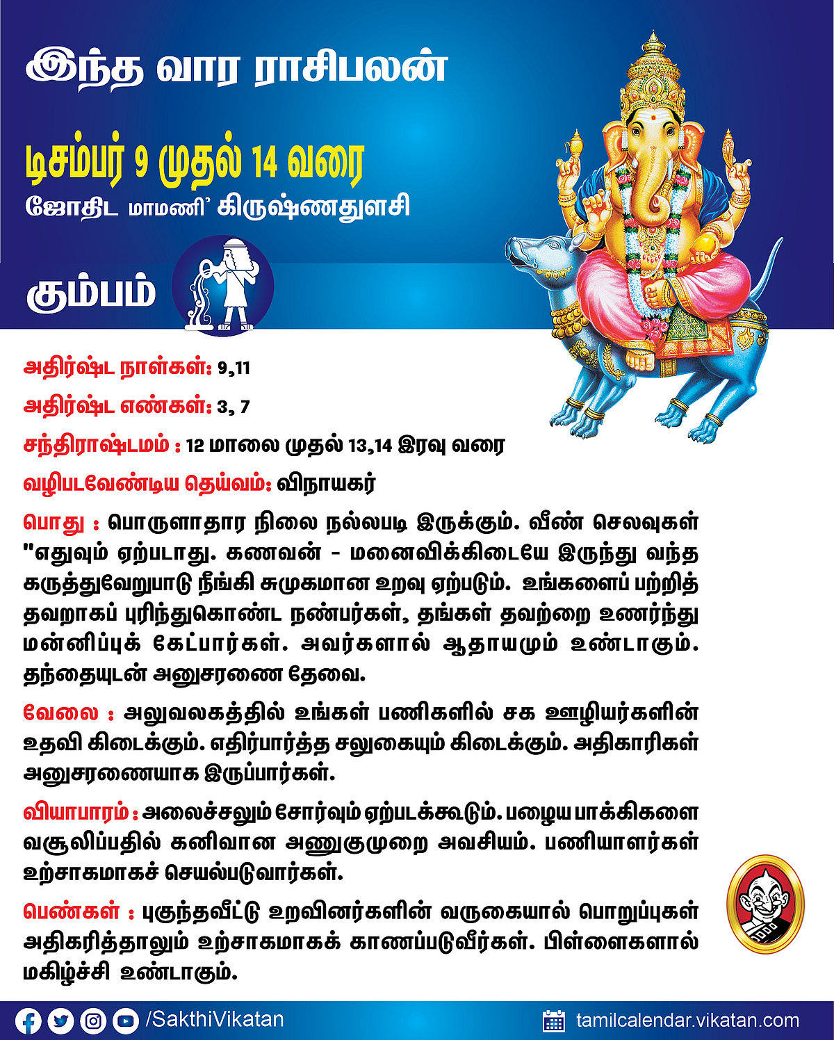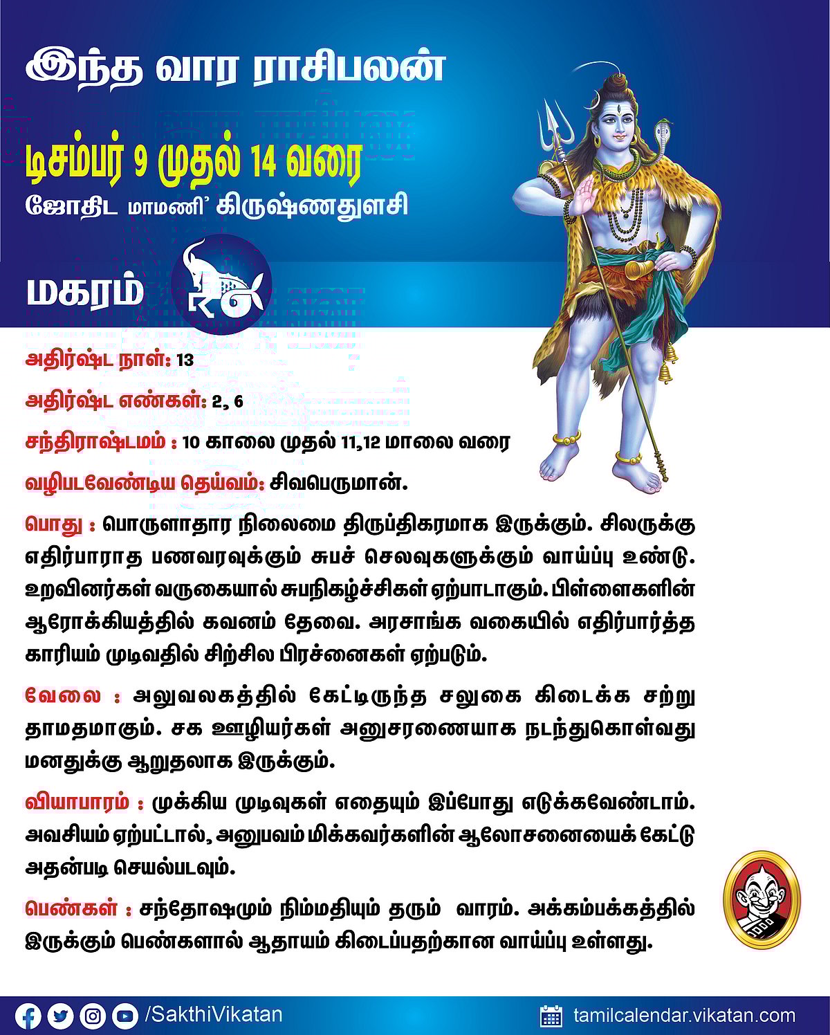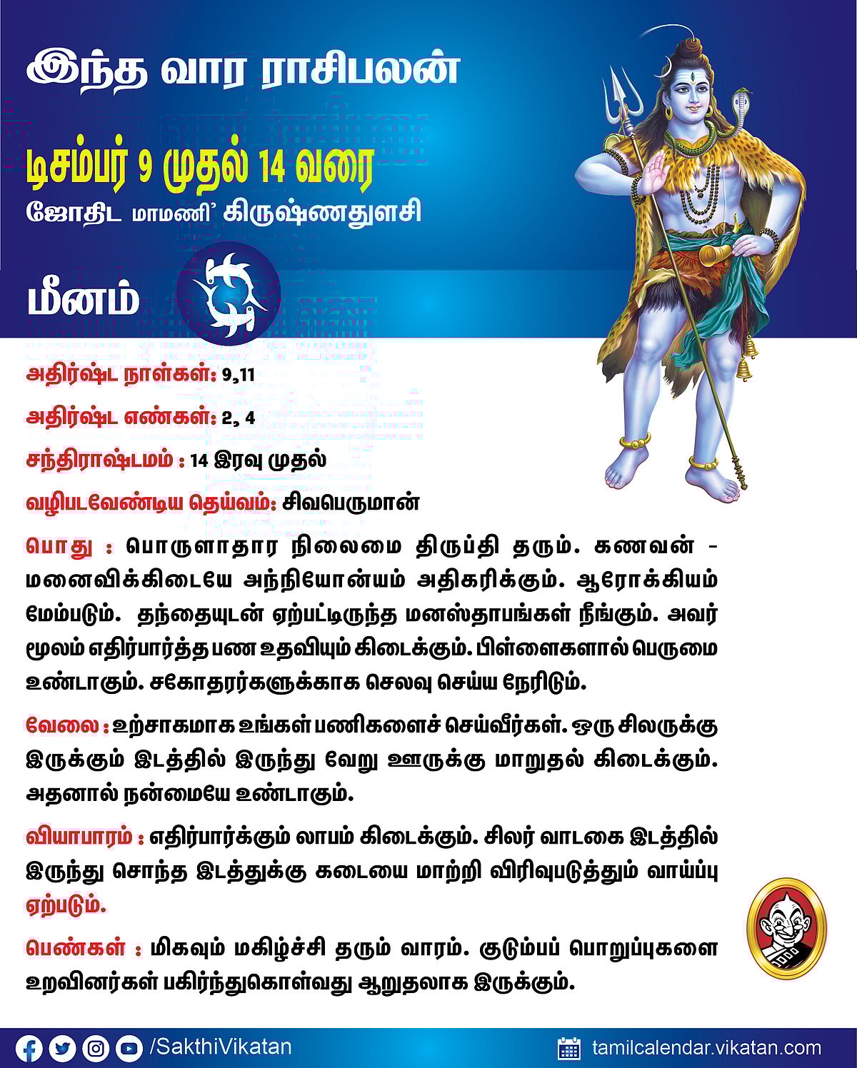 இந்த வார ராசிபலன் டிசம்பர் 9 முதல் 14 வரை #VikatanPhotoCards December 9, 2025 by விகடன் வார ராசிபலன் மேஷம் ரிஷபம் மிதுனம் கடகம் சிம்மம் கன்னி துலாம் விருச்சிகம் தனுசு மகரம் கும்பம் மீனம் Source link