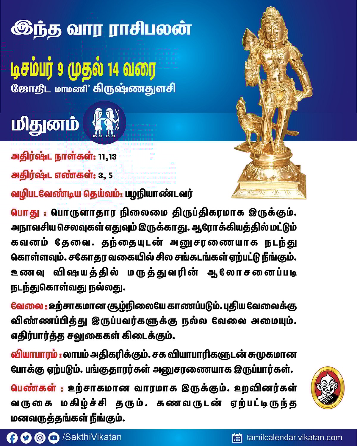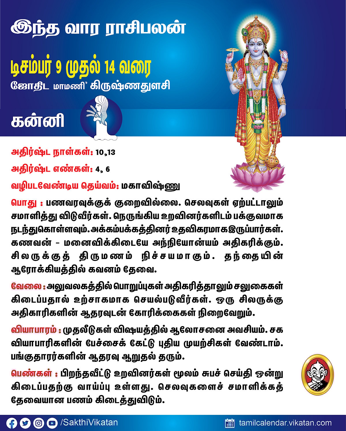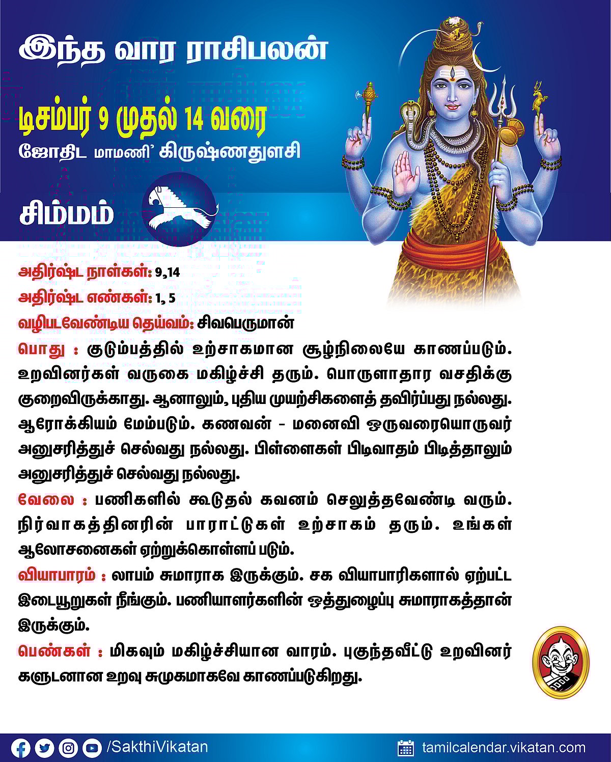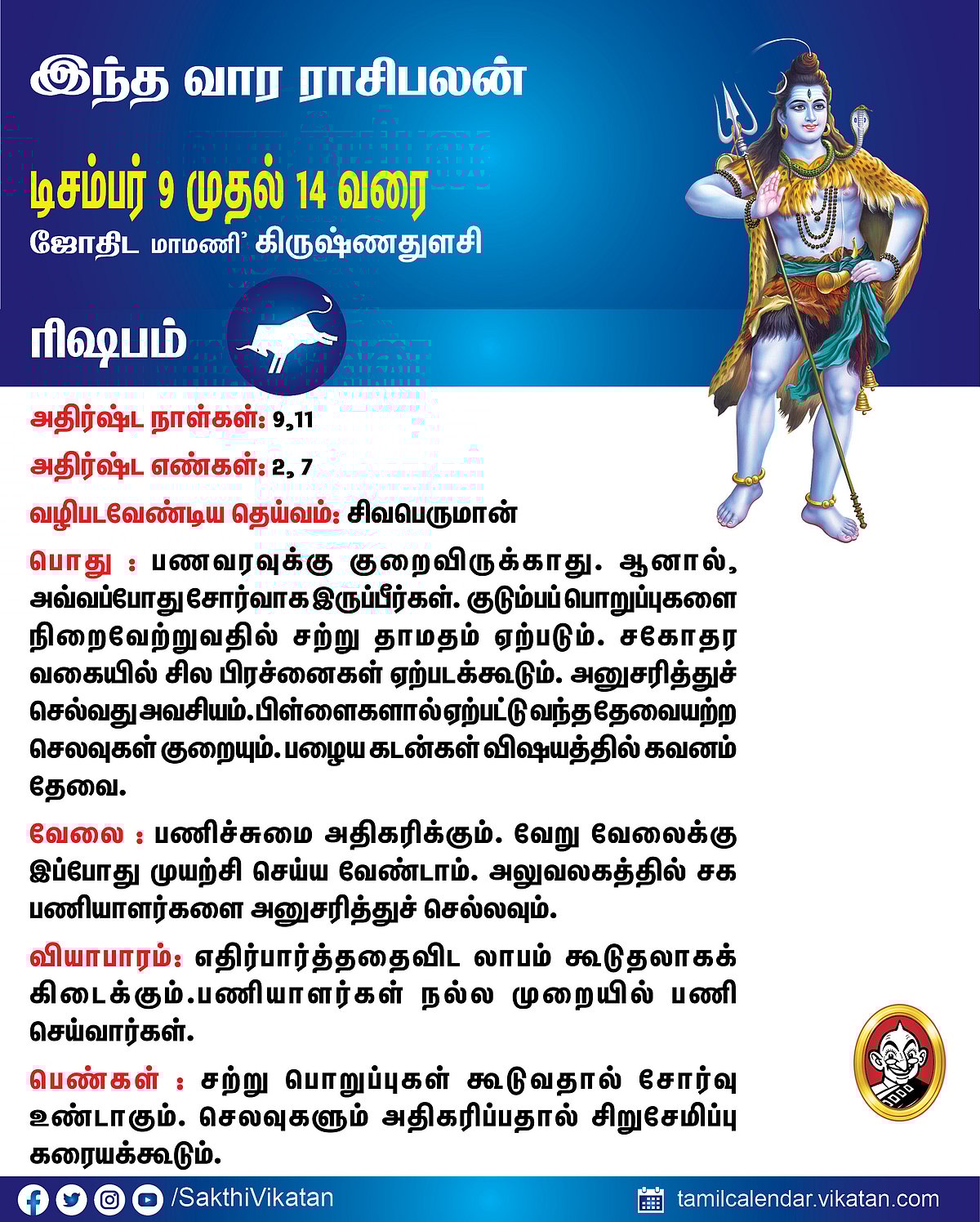 இந்த வார ராசிபலன் டிசம்பர் 9 முதல் 14 வரை #VikatanPhotoCards December 9, 2025 by விகடன் வார ராசிபலன் மேஷம் ரிஷபம் மிதுனம் கடகம் சிம்மம் கன்னி துலாம் விருச்சிகம் தனுசு மகரம் கும்பம் மீனம் Source link