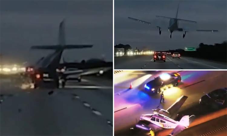 இதனால் அதிர்ச்சியடைந்த விமானி பிரேவர்டு நகரின் நெடுஞ்சாலையில் விமானத்தை அவசர அவசரமாக தரையிறக்கினார். அப்போது, விமானம் சாலையில் சென்ற கார் மீது மோதியது.