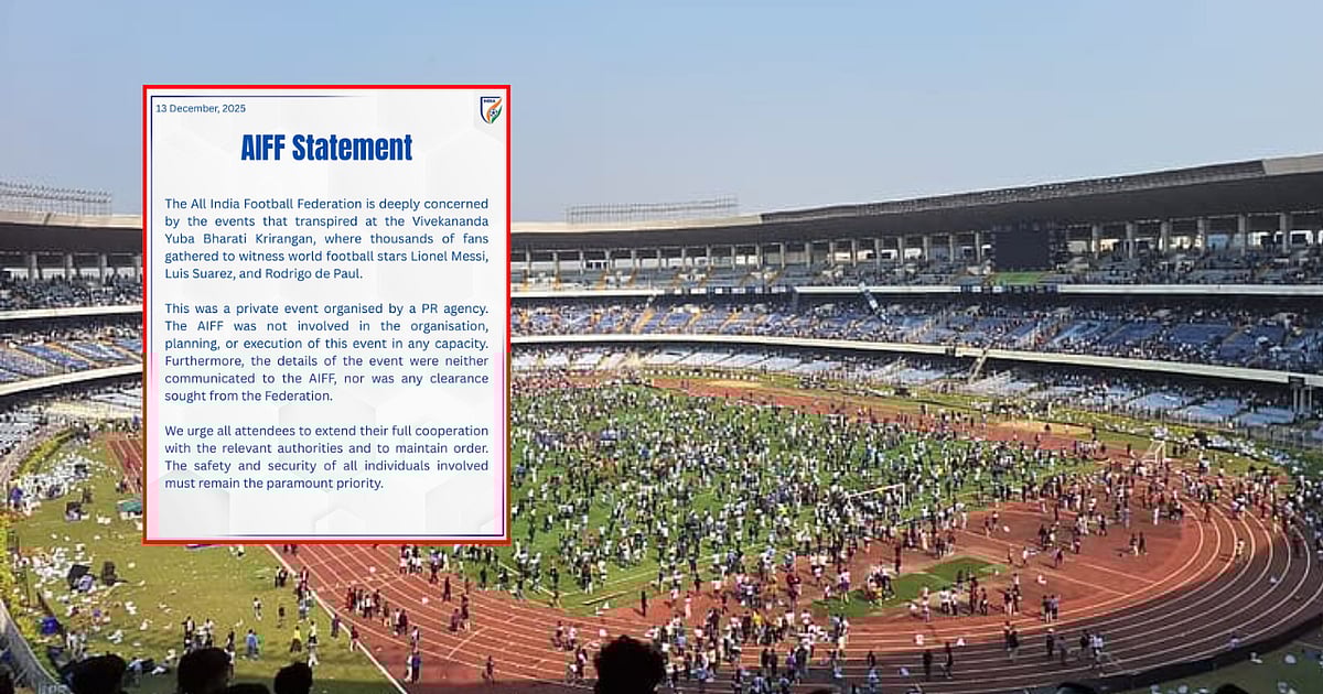 இதுகுறித்து அகில இந்திய கால்பந்து சம்மேளனம் (AIFF) வெளியிட்ட அறிக்கையில், “உலகக் கால்பந்து நட்சத்திரங்களான லியோனல் மெஸ்ஸி, லூயிஸ் சுவாரஸ் மற்றும் ரோட்ரிகோ டி பால் ஆகியோரைக் காண ஆயிரக்கணக்கான ரசிகர்கள் திரண்ட விவேகானந்தா யூபா பாரதி கிரிங்கன் மைதானத்தில் நடந்த சம்பவங்கள் குறித்து அகில இந்திய கால்பந்து சம்மேளனம் ஆழ்ந்த கவலை கொள்கிறது” என்று குறிப்பிட்டுள்ளது.