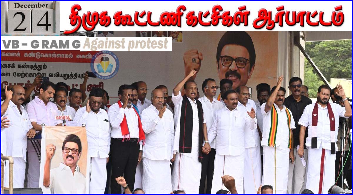 சென்னை: மத்தியஅரசு 100நாள் வேலைதிட்டத்தின் பெயர் விபி ஜி ராம் ஜி திட்டம் என மாற்றம் செய்துள்ளதற்கு எதிர்ப்பு தெரிவித்து வரும், 24ந்தேதி சென்னை உள்பட தமிழ்நாடு முழுவதும் மதசார்பற்ற முற்போக்கு கூட்டணி ஆர்ப்பாட்டம் நடைபெறும் என அறிவிக்கப்பட்டு உள்ளது. காங்கிரஸ் ஆட்சி காலத்தில் ஏழை மக்களின் வாழ்வாதாரத்துக்காக கொண்டு வரப்பட்ட, மகாத்மா காந்தி ஊரக வேலைவாய்ப்புத் திட்டத்தை மத்தியஅரசு மாற்றம் செய்துள்ளது. அதற்கு ‘வளா்ந்த பாரத ஊரக வேலைவாய்ப்பு மற்றும் வாழ்வாதார உறுதியளிப்பு சட்டம்’ என்று பெயர் […]