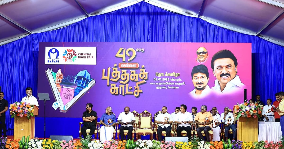 சென்னையில் 49-வது புத்தகக் காட்சியை, Ymca மைதானத்தில் முதல்வர் ஸ்டாலின் இன்று மாலை (08-01-2026) தொடங்கி வைத்தார்.
