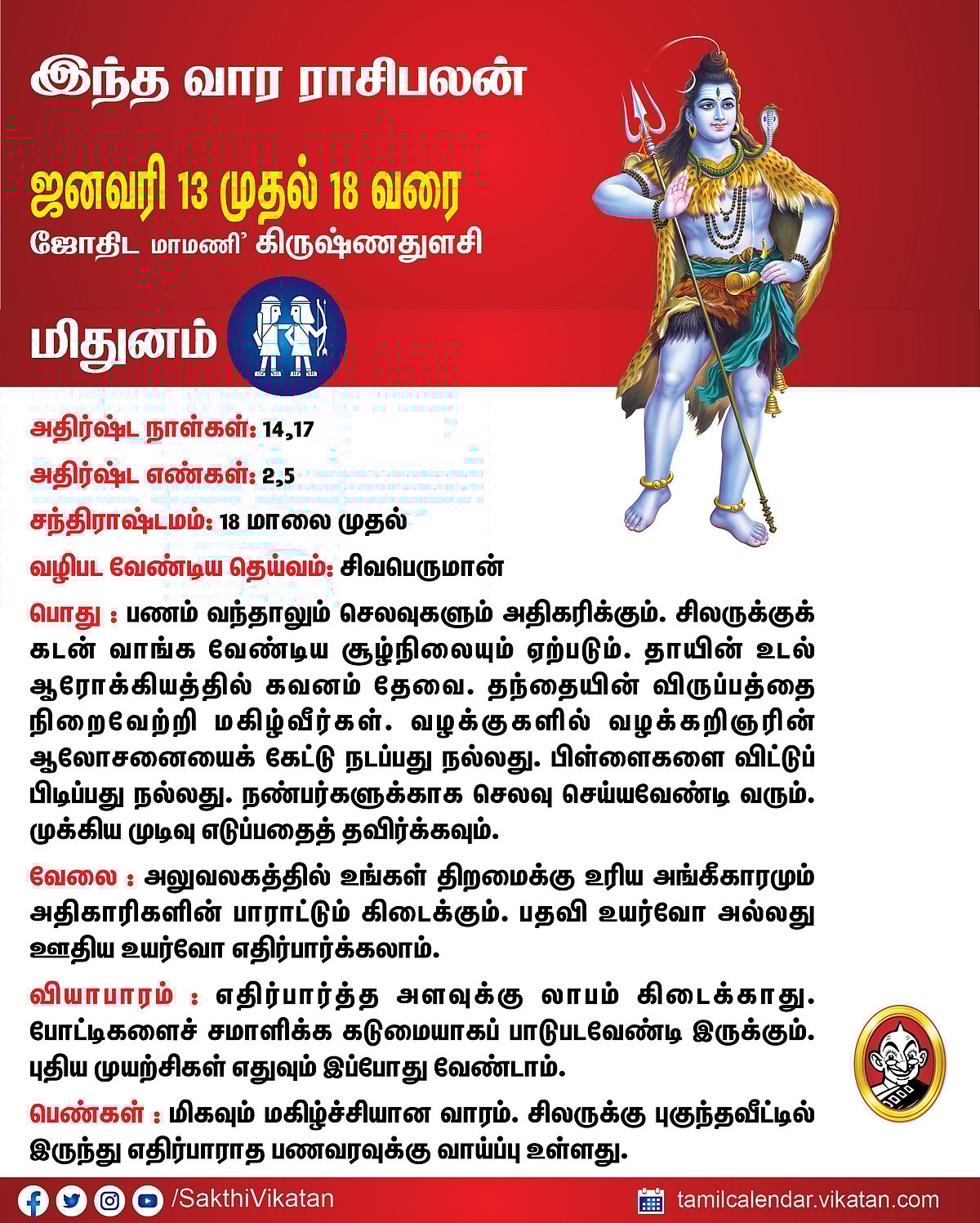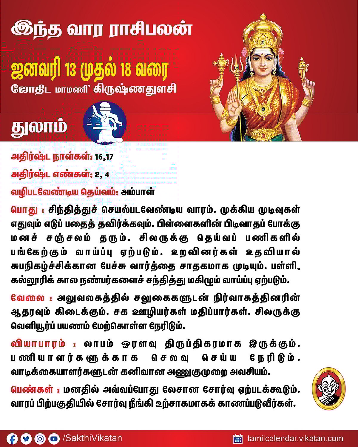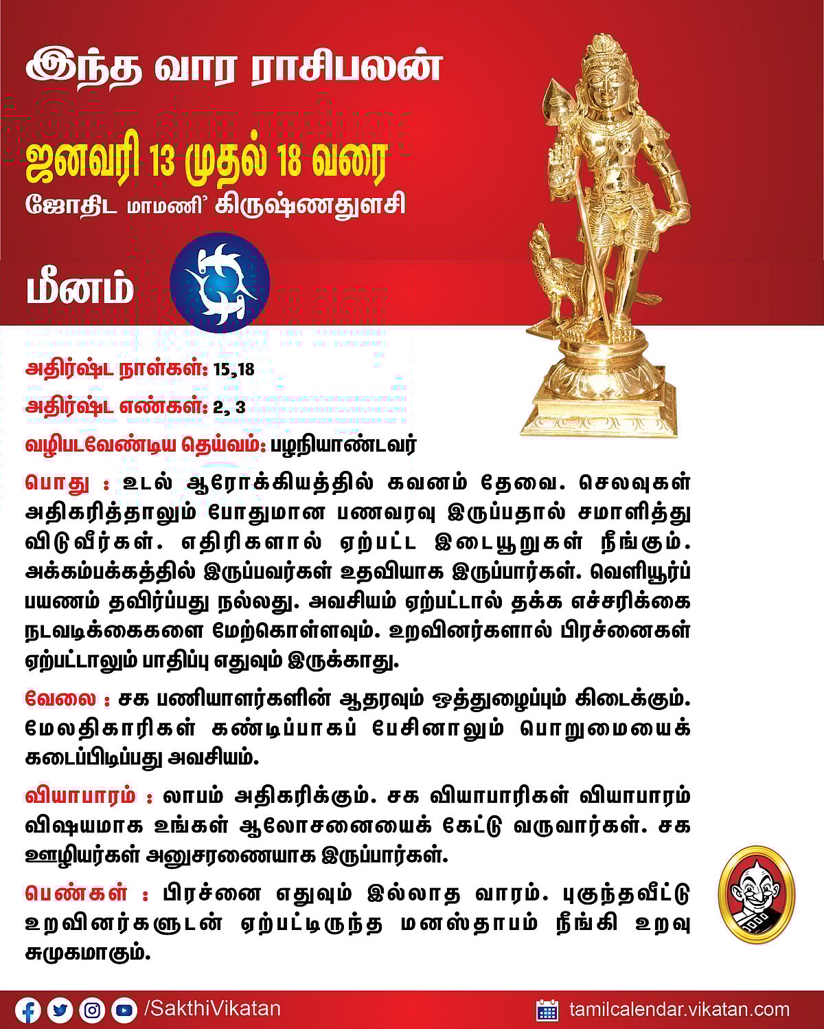 இந்த வார ராசிபலன் ஜனவரி 13 முதல் 18 வரை #VikatanPhotoCards January 13, 2026 by விகடன் மேஷம் ரிஷபம் மிதுனம் கடகம் சிம்மம் கன்னி துலாம் விருச்சிகம் தனுசு மகரம் கும்பம் மீனம் Source link