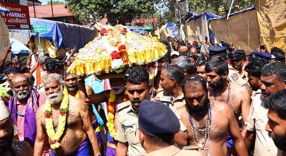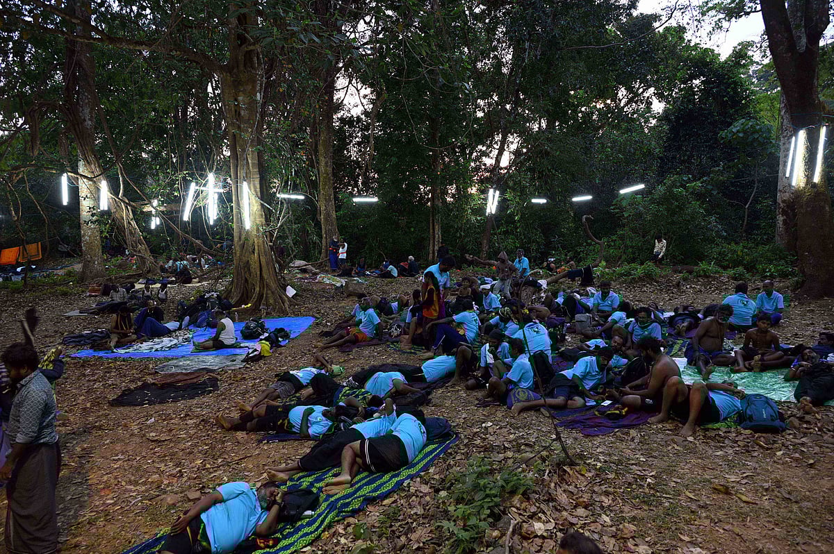 சபரிமலை: மகரவிளக்கு தரிசிக்க காட்டில் விரி வைத்து பக்தர்கள் தங்கியிருக்கிறார்கள். ஐயப்ப சுவாமிக்கு சார்த்தப்படும் திருவாபரணம் யாத்திரையாக செல்லும் காட்சி. Photo Album