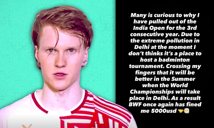 டெல்லியில் நடைபெற்று வரும் இந்திய ஓபன் சூப்பர் 750 பேட்மிண்டன் போட்டி குறித்து வெளிநாட்டு வீரர்கள் சிலர் கடும் கவலை வெளியிட்டுள்ளனர். குறிப்பாக, டென்மார்க் நாட்டைச் சேர்ந்த வீரர்கள் காற்று மாசு மற்றும் சுகாதார குறைபாடுகள் பற்றி பேசியுள்ளனர். உலக தரவரிசையில் 3-ஆம் இடத்தில் இருக்கும் ஆண்டர்ஸ் ஆன்டன்சன், டெல்லியில் நிலவும் கடும் காற்று மாசு காரணமாக இந்தப் போட்டியில் இருந்து விலகினார். இதே காரணத்தால் அவர் தொடர்ந்து மூன்றாவது ஆண்டாக இந்திய ஓபனை தவிர்த்துள்ளார். இதுகுறித்து […]