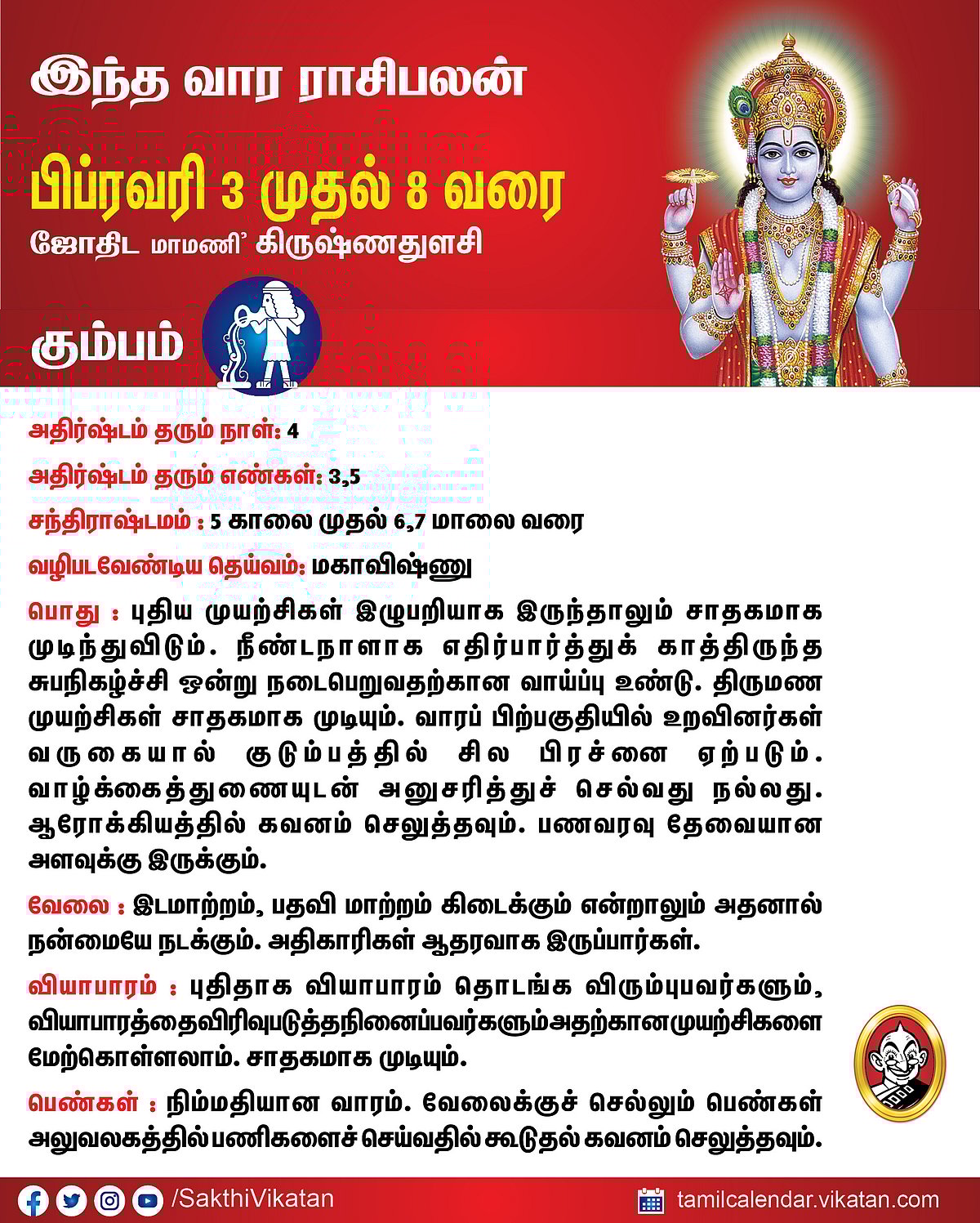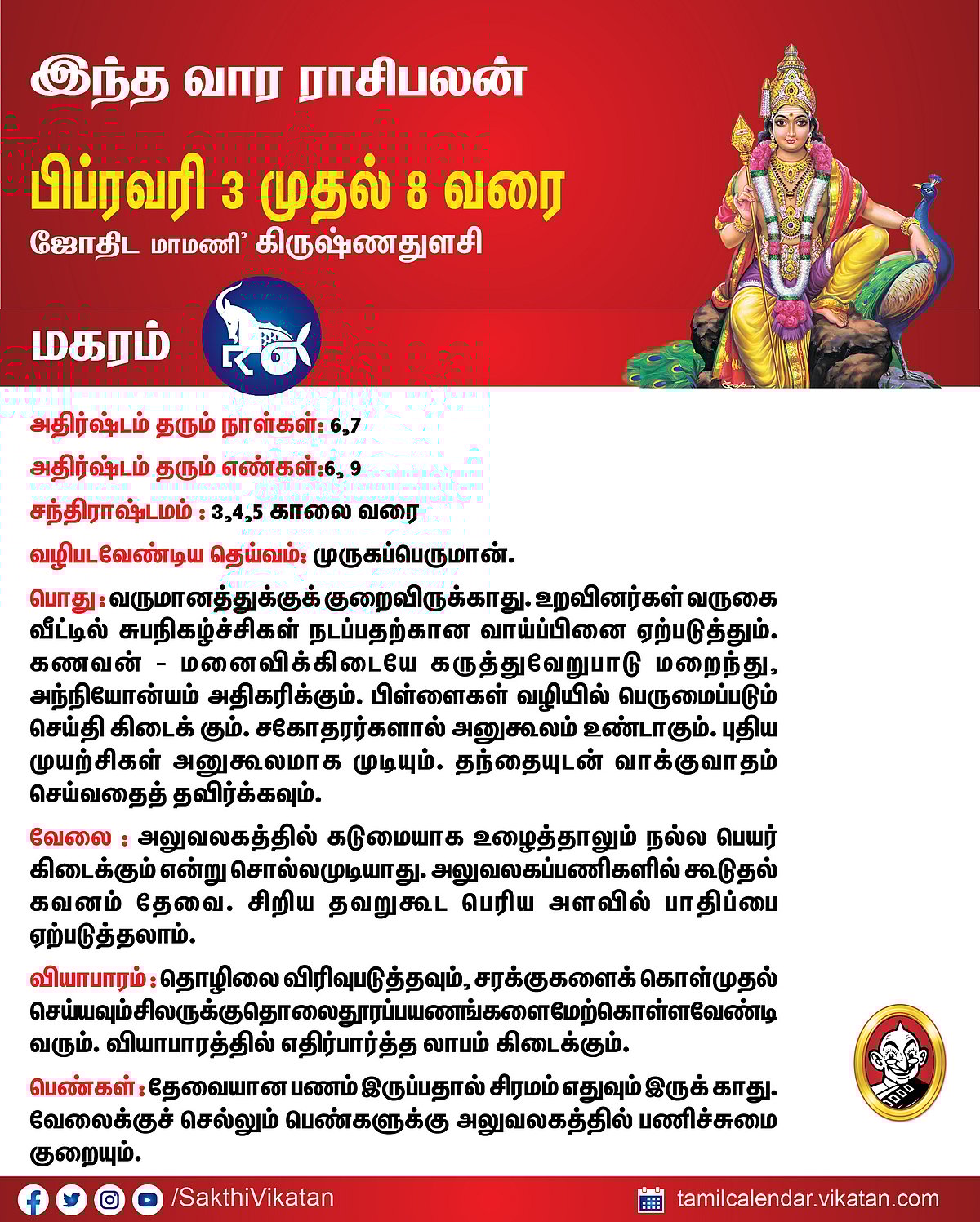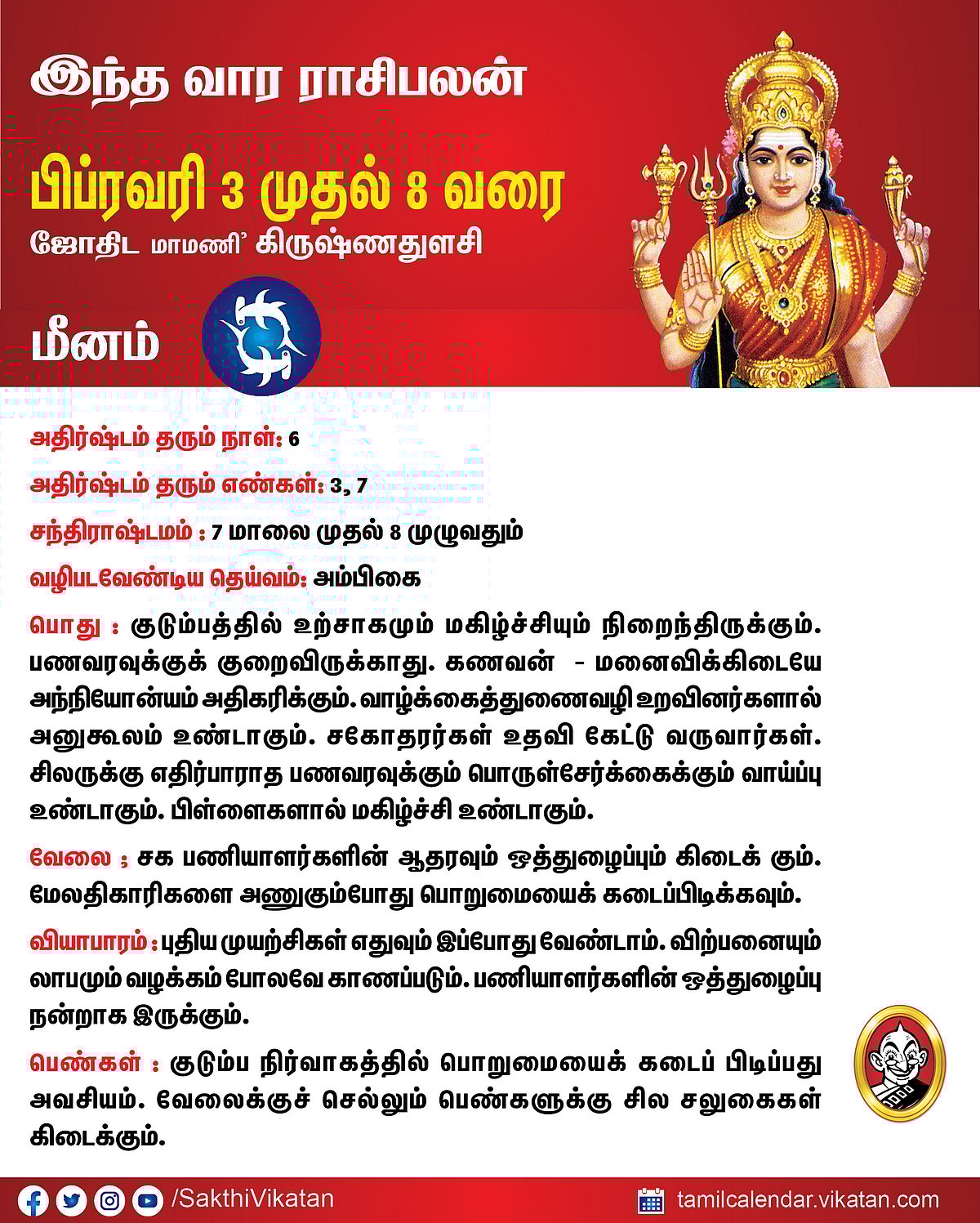 இந்த வார ராசிபலன் பிப்ரவரி 3 முதல் 8 வரை #VikatanPhotoCards February 3, 2026 by விகடன் வார ராசிபலன் மேஷம் ரிஷபம் மிதுனம் கடகம் சிம்மம் கன்னி துலாம் விருச்சிகம் தனுசு மகரம் கும்பம் மீனம் Source link