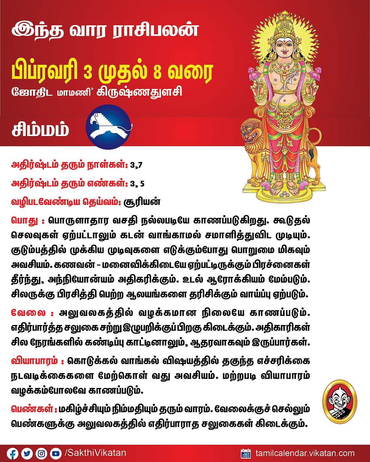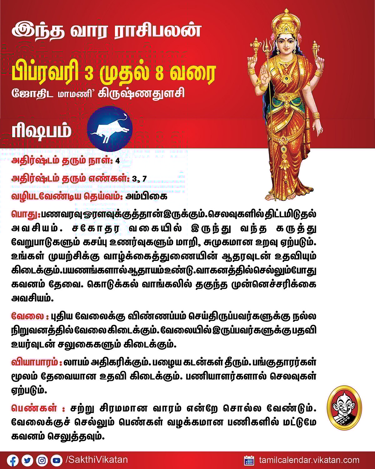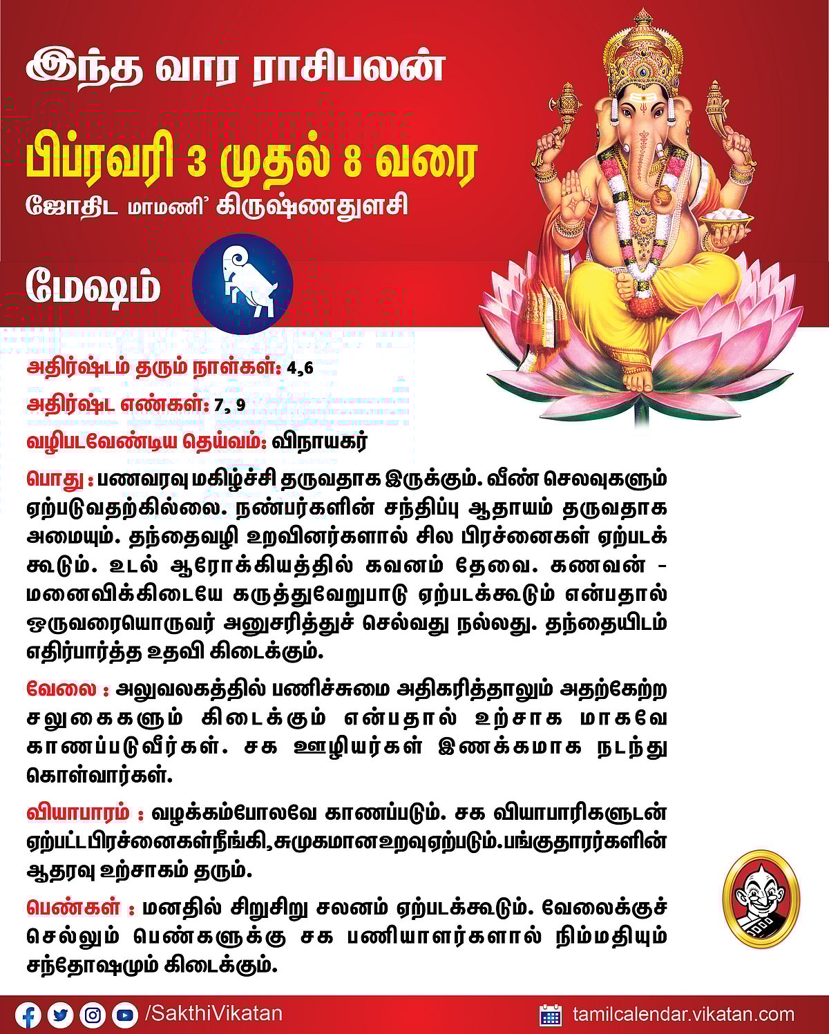 இந்த வார ராசிபலன் பிப்ரவரி 3 முதல் 8 வரை #VikatanPhotoCards February 3, 2026 by விகடன் வார ராசிபலன் மேஷம் ரிஷபம் மிதுனம் கடகம் சிம்மம் கன்னி துலாம் விருச்சிகம் தனுசு மகரம் கும்பம் மீனம் Source link