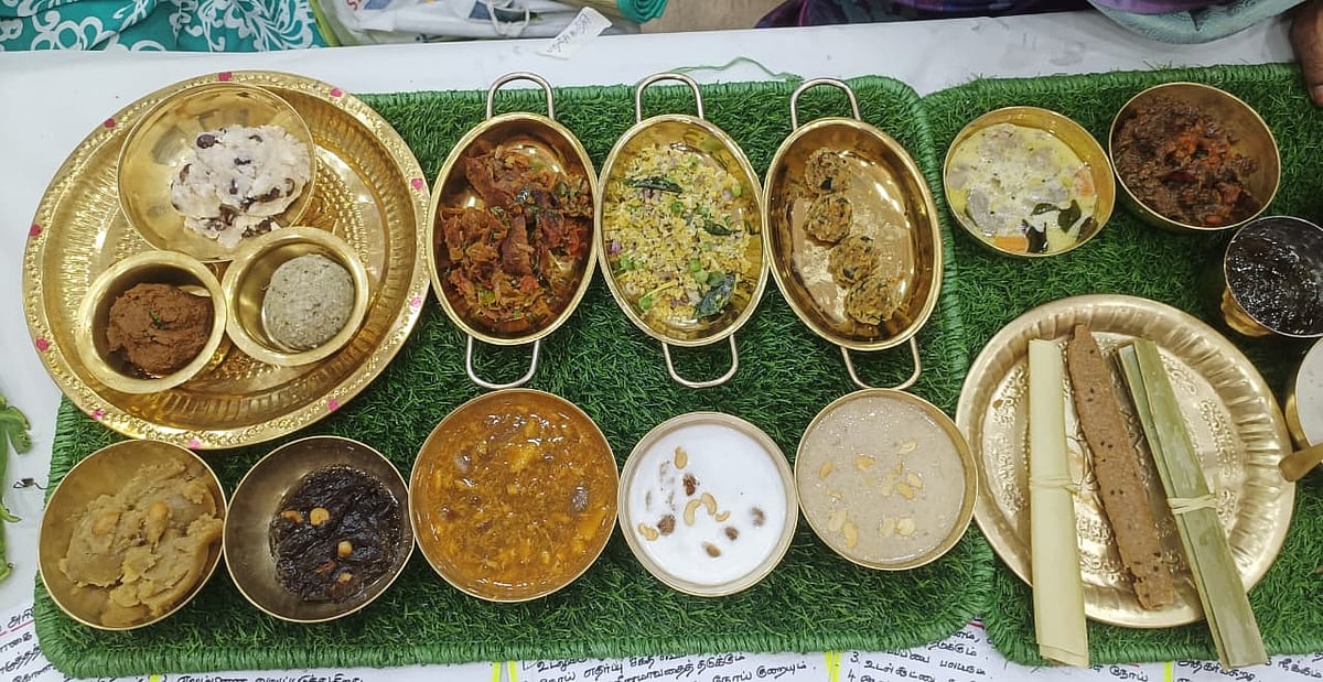 அதேபோல, காயல்பட்டினம் ஓட்டு மாவு, பாசிப்பருப்பு அல்வா, முள்ளங்கி கோலா உருண்டை, உண்ணிப்பூ பாயாசம், மூங்கில் குருத்து குழம்பு, நஞ்சிக்கொட்டான் ரோல், பனை கிழங்கு மற்றும் முருங்கைப்பூ உருண்டை, நரி பயிறு துவையல், கண்டதிப்பிலி சதகுப்பை ரசம், பப்பாளிக்காய் பொடிமாஸ், முருங்கைக்கீரை பிஸ்கட், கேக் மற்றும் சாக்லெட், ராகி ப்ரௌனி, பிரண்டை குழம்பு, எட்டு வகை அரிசி லட்டு, கருப்பு கவுனி அரிசி வட்டிலாப்பம், எள்ளு இட்லி, பிரண்டை வத்தல் போன்ற பாரம்பர்ய மற்றும் சிறுதானிய வகைகளைக் கொண்டு எண்ணற்ற உணவு வகைகளை காட்சிப்படுத்தி அசத்தினர்.