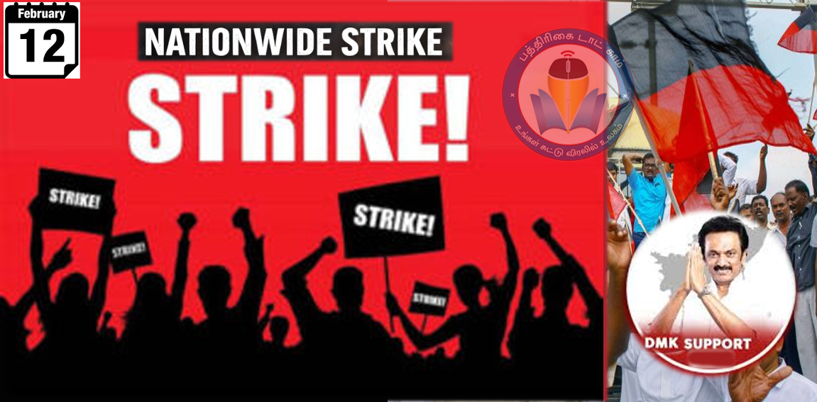 சென்னை: நாளை (பிப்ரவரி 12ந்தேதி) மத்திய பா.ஜ.க. அரசின் தொழிலாளர் விரோத கொள்கைகளை எதிர்த்து நாடு முழுவதும் தொழிற் சங்க அமைப்புகள் நடத்தும் வேலைநிறுத்தத்திற்கு தி.மு.க. ஆதரவு தெரிவிப்பதாக அறிவித்து உள்ளது. மத்திய பா.ஜ.க. அரசின் விவசாயிகள் விரோத – தொழிலாளர் விரோத கொள்கைகளை எதிர்த்து பிப்ரவரி 12 அன்று தொழிற் சங்க அமைப்புகள் நடத்தும் வேலைநிறுத்தத்திற்கு ஆதரவளிப்பதாக தி.மு.க அறிவித்துள்ளது. நாளை ஒன்றிய பட்ஜெட்டில் தமிழ்நாட்டை வஞ்சித்த பாஜக அரசையும், அதற்கு ஒத்து ஊதும் அடிமை […]