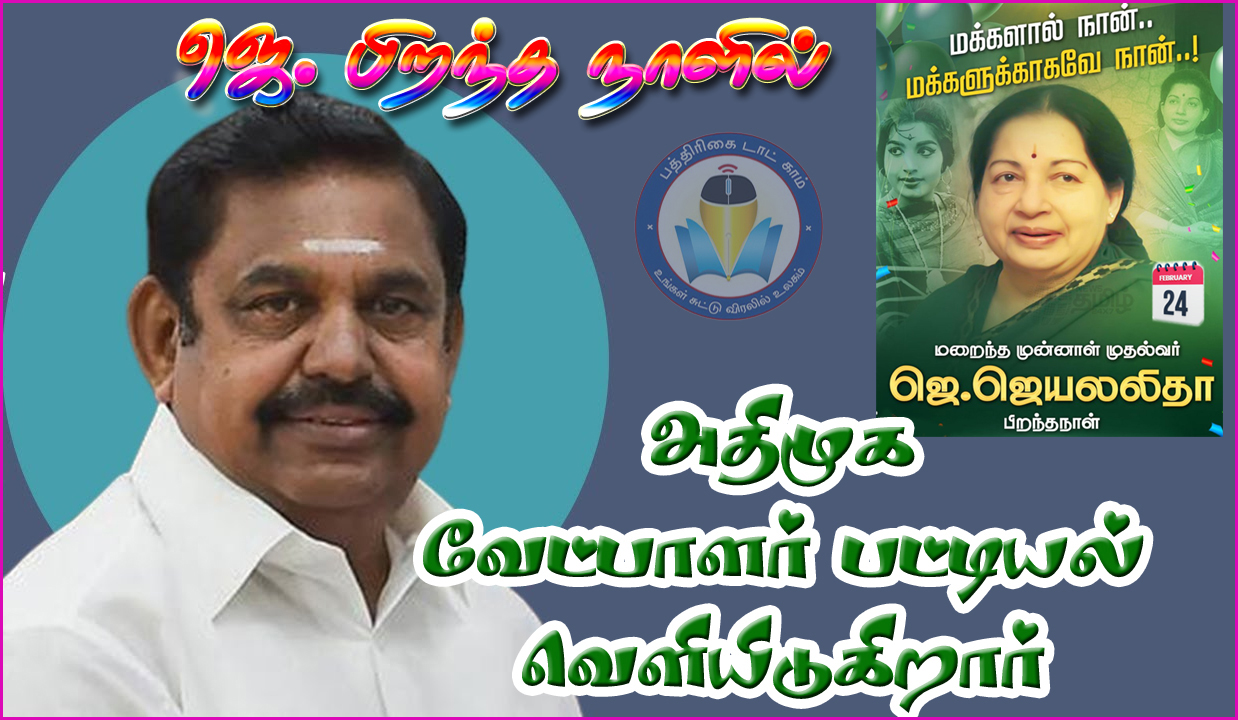 சென்னை: மறைந்த முதன் முதல்வரும், அதிமுக பொதுச்செயலாளருமான ஜெயலலிதா பிறந்தநாளன்று., அதிமுகவின் முதற்கட்ட வேட்பாளர் பட்டியல் வெளியிட உள்ள எடப்பாடி பழனிச்சாமி கூறி உள்ளார். முன்னாள் முதல்வரான மறைந்த ஜெயலலிதா பிறந்தநாளான பிப்ரவரி 24ந்தேதி அதிமுகவினரால் கொண்டாடப்பட உள்ளது. அன்றைய நாளில், வரும் சட்டமன்ற தேர்தலில் அதிமுக சார்பில் போட்டியிடும், முதற்கட்ட வேட்பாளர் பட்டியலை வெளியிட அ.தி.மு.க., பொதுச்செயலாளர் பழனிசாமி திட்டமிட்டுள்ளார். 2026 சட்டமன்ற தேர்தல் இன்னும் இரண்டு மாதங்களில் நடைபெற உள்ளது. இதையடுத்து, தமிழ்நாட்டின் அரசியல் […]