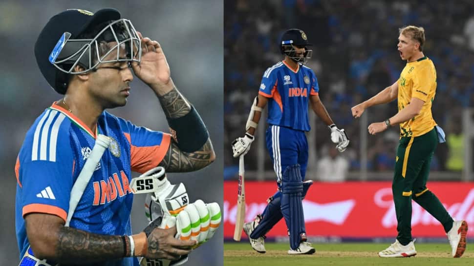 இதனால், தென்னாப்பிரிக்காவின் ஸ்கோர் 20 ஓவர்கள் முடிவில் 187/7 ஆக இருந்தது. ஸ்டப்ஸ் 44(24) ரன்களை குவித்து அருமையான பினிஷிங்கை கொடுத்தார். பும்ரா 3 விக்கெட், அர்ஷ்தீப் சிங் 2 விக்கெட், வருண் மற்றும் சிவம் தூபே தலா 1 விக்கெட்டை எடுத்தனர். இதனால், 188 ரன்கள் என்ற இலக்கை இந்திய அணி துரத்தியது. இதுவரை ஐசிசி டி20 உலகக் கோப்பை தொடர் வரலாற்றில் இந்திய அணி 173 ரன்களுக்கு மேல் வெற்றிகரமாக சேஸிங் செய்தது கிடையாது. இன்றைய போட்டியிலும் இந்த துரதிருஷ்டம் இந்திய அணியை தொடர்ந்தது.