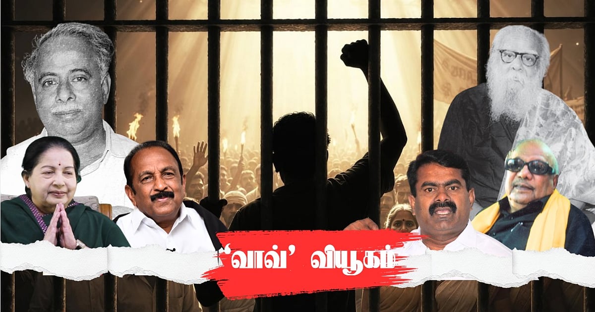 அந்த வரிசையில் பெரியார், அண்ணா தொட்டு கருணாநிதி, வைகோ, ஸ்டாலின், சீமான் என்று கைதாகி தங்கள் அரசியல் பயணத்தில் தனி அத்தியாயங்களை எழுதியவர்களைப் பற்றி பார்ப்போம்.