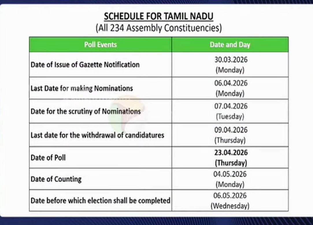டெல்லி விஞ்ஞான் பவனில் தலைமை தேர்தல் ஆணையர் ஞானேஷ் குமார் தேர்தல் தேதி தொடர்பாக, “மேற்கு வங்கம், அசாம், தமிழ்நாடு, கேரளா மற்றும் புதுச்சேரி ஆகிய பகுதிகளில் மொத்தம் 17.4 கோடி வாக்காளர்கள் தங்கள் வாக்குகளைப் பதிவு செய்வார்கள். நீங்கள் வாழ்வில் மிக முக்கியமான பொறுப்புகளில் ஒன்றை ஏற்கத் தயாராக இருக்கிறீர்கள். உங்கள் வாக்கு, நீங்கள் தேர்ந்தெடுக்கும் எதிர்காலம்.