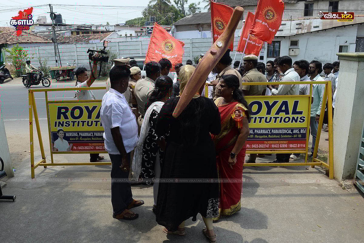 100 மீட்டர் எல்லை தாண்டி அதிகமான ஆதரவாளர்களுடன் வந்த தொண்டாமுத்தூர் நாம் தமிழர் கட்சி வேட்பாளர் ரஜபு நிஷா